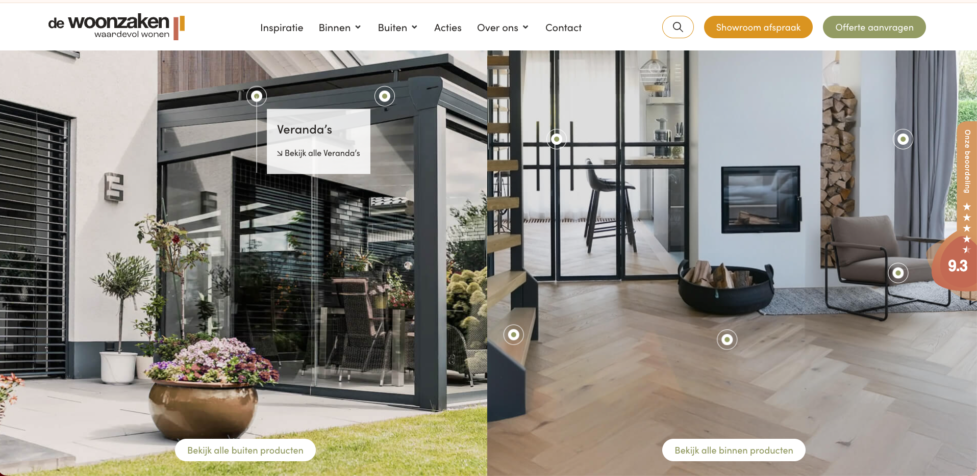 Inspiratie speelt een grote rol op de nieuwe website. Daarom hebben de ‘binnenkijkers’ een prominente plek gekregen. Hier krijgen bezoekers een kijkje in gerealiseerde projecten, met beelden die laten zien wat er allemaal mogelijk is. Dit onderdeel staat niet alleen op de homepage, maar ook vooraan in het menu en op de productpagina’s. Bovendien hebben we een digitale showroom ontwikkeld. Bezoekers kunnen online door de meer dan 1000 m² grote showroom lopen en zo alvast inspiratie opdoen voordat ze langskomen.