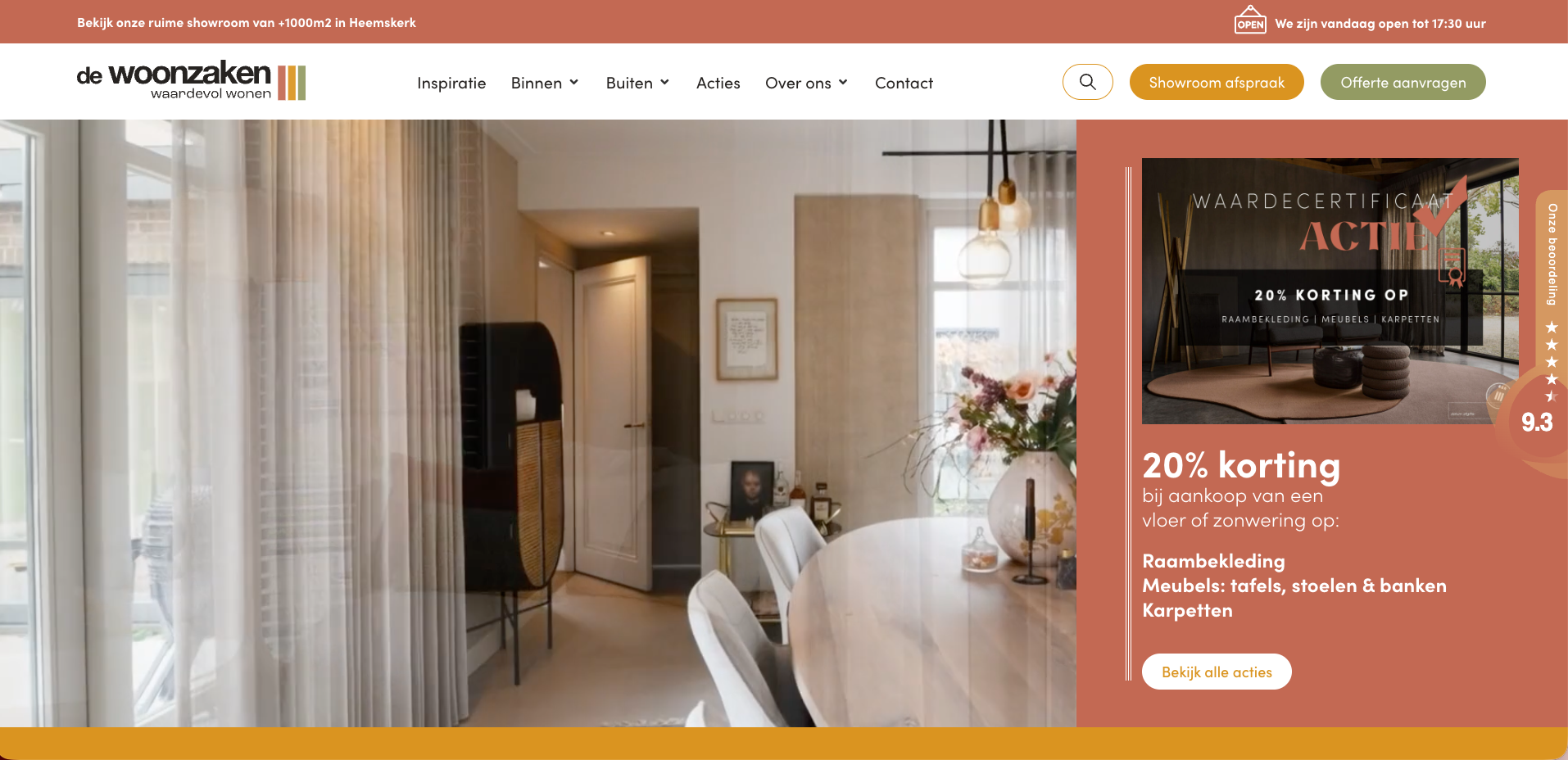 De Woonzaken helpt al meer dan 30 jaar mensen om van hun huis een fijne plek te maken. Wat begon als zonweringspecialist in Uitgeest groeide uit tot een complete woonwinkel in Heemskerk. Vandaag vind je er alles op het gebied van vloeren, raambekleding, zonwering, traprenovatie, meubels en toekomstbestendige woonoplossingen.