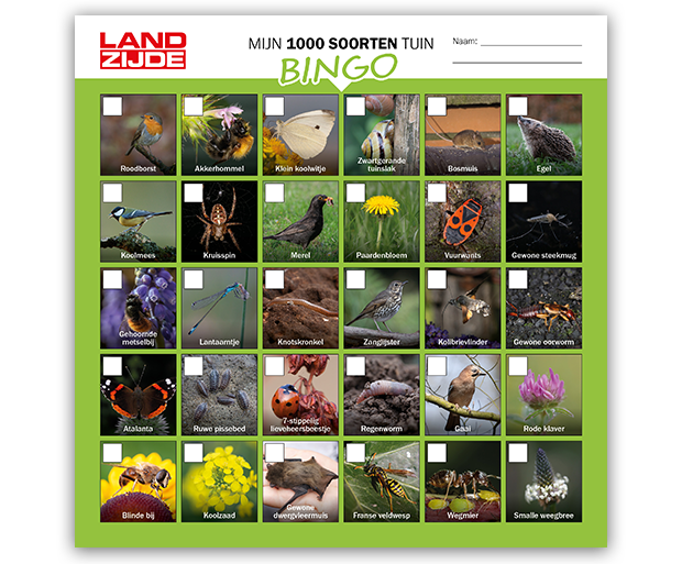 Om deelnemers te stimuleren dieren, insecten en planten op het boerenerf te ontdekken, heeft ipsis een bingokaart ontworpen. Bioloog Luc Hoogenstein leverde prachtige foto’s aan en ipsis creëerde een bingokaart in de stijl van Landzijde. Bij de vormgeving is rekening gehouden met de grootte van de afbeeldingen en voldoende ruimte voor afvinken. De bingokaart is handzaam en gedrukt op beschrijfbaar papier. De deelnemers reageerden enthousiast bij het gebruik van de bingokaart.